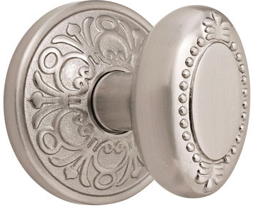 Oval Beaded Knob with Lancaster Rosette- Satin Nickel