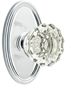 Astoria Clear Knob with Oval Rosette - Polished Chrome