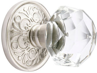 Diamon Crystal Knob with Lancaster Rosette-Satin Nickel