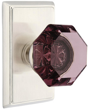 Old Town Violet Knob with Rectangular Rosette - Satin Nickel